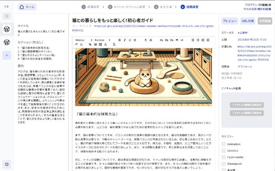 記事の自動投稿機能も搭載しているので、「定期更新が難しい...」という方でも、一度AIに入力をしてしまえば、執筆から投稿までも全て自動で行なってくれます。