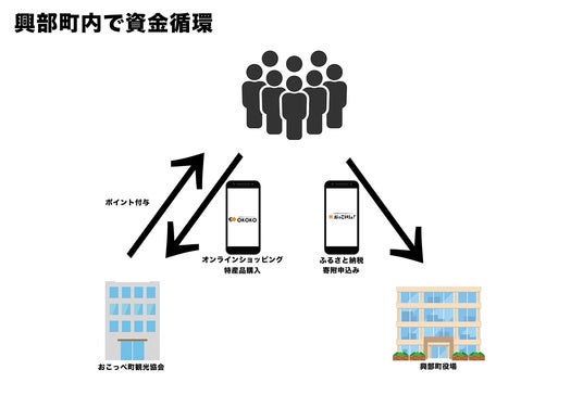 北海道興部町公式のふるさと納税サイト「おっこいしょ!」は、町内にある「一般社団法人おこっぺ町観光協会」が運営しており、申込みにおいて受け取るふるさと納税寄附金を町外に流出することなくサイト運営している。