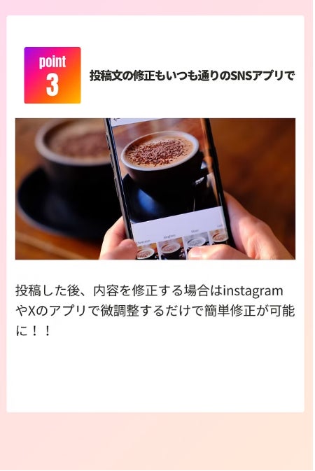 投稿した後、内容を変更したい場合はInstagramやXのアプリから修正が可能。