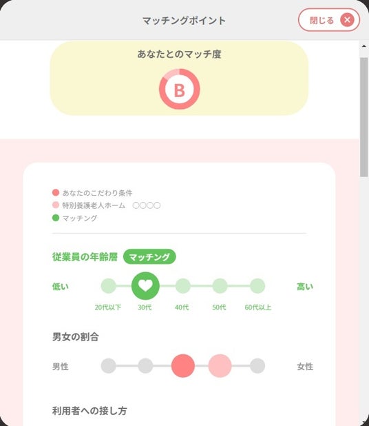 これにより、求職者と施設のマッチング精度を高め、採用活動の効率化をサポートします。
