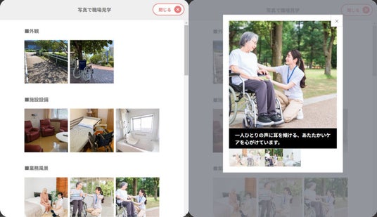 「ケアぴた」では、職場の様子を動画や写真で紹介する機能を搭載。