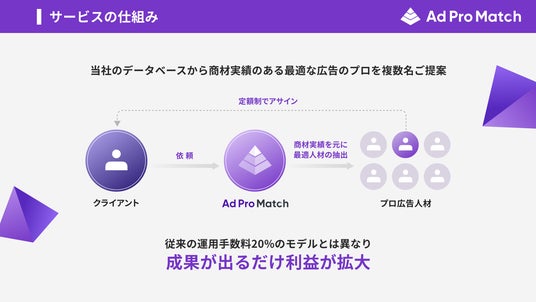 「Ad Pro Match」は、商材実績のある広告のプロを定額でアサインできるサービスです。