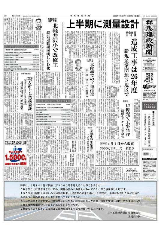 (株)日本工業経済新聞社が発刊している建設専門紙「群馬建設新聞」は、創刊から72年を迎え、電子版や入札情報データベース「入札ネット」をツールに加え、新聞の新たな価値を建設産業界に提案していきます。
