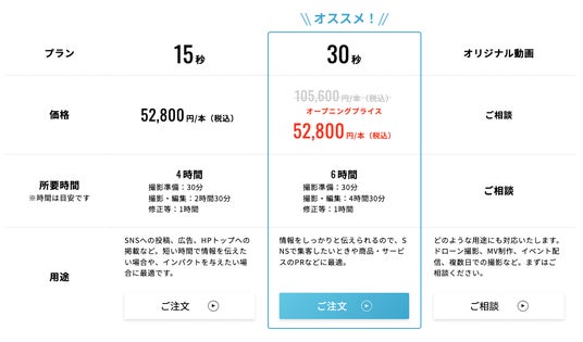 この料金で、企画・撮影・編集までを一括対応いたします。