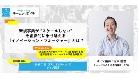 本セミナーでは、同勉強会で得られた知見を広く共有する機会をご提供するとともに、数々の大企業の新規事業創出を伴走支援してきた「チーム・ゼロイチ」代表取締役・CEO 赤木優理様が、大企業における新規事業創出を加速するために求められる「新規部門の課長職への提言」や、「PJ支援を行うチームへの提案」について解説します。