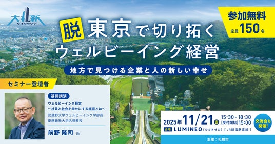 札幌市は、11月21日(金)東京・新宿にて、セミナー 「脱東京で切り拓くウェルビーイング経営~地方で見つける企業と人の新しい幸せ~」を開催いたします。
