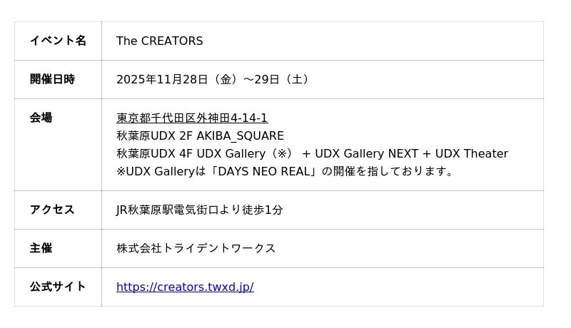 ご参加予定のみなさまは、ぜひ会場での新たな出会いや体験とともに、クリエイター同士・企業とのコラボレーションのきっかけをお楽しみください。