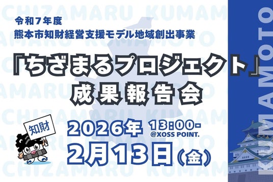 特許庁と熊本市は、スタートアップ等の知的財産の活用による「稼ぐ力」の強化に向けて、今年度から、世界へ挑戦できるスタートアップ等の発掘・育成、産学官金の協働により、地域全体の知財活用強化を図る「知財活用熊本モデル」の構築に取り組んでいます。地域の支援機関や専門家が、知財面を中心とした伴走支援を行っています。「熊本市知財経営支援モデル地域創出事業」の成果報告会では、支援成果の進捗報告や、支援企業・支援機関によるパネルディスカッションを実施します。地域のスタートアップ・中小企業・関係機関の皆様の御参加を心よりお待ちしております。熊本発のイノベーションが更に加速することを期待しております。