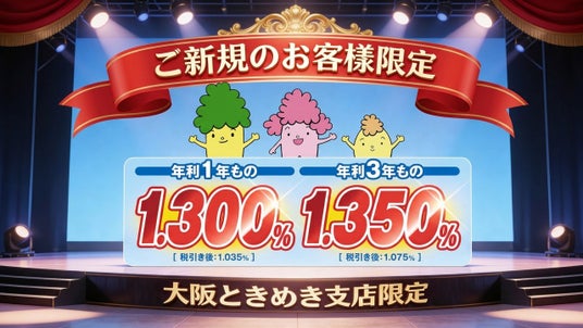 大阪厚生信用金庫(所在地:大阪府、金融機関コード:1633)は、インターネット支店「大阪ときめき支店」において、スマホ専用定期預金「ときめき定期預金」の金利キャンペーンを2026年4月1日(水)より開始します。