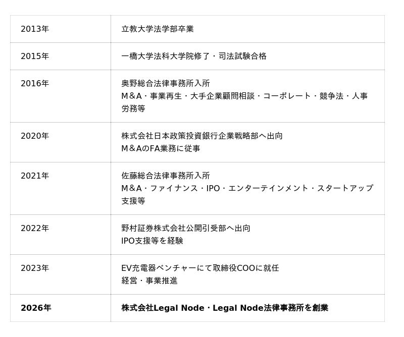 Legal Nodeは、AIネイティブに完全固定価格・短納期・高品質でM&A法務サービスを提供します。 代表の川野先生は、M&A/企業法務の最前線でクライアントを支援してきた豊富な実績があり、またスタートアップの経営経験も有すなど、本事業に最適な起業家だと考えております。 M&A法務を中心にM&Aに関わるプロセスを再定義し、大きなインパクトを出せることを期待しており、同社の挑戦を全力で支援してまいります。