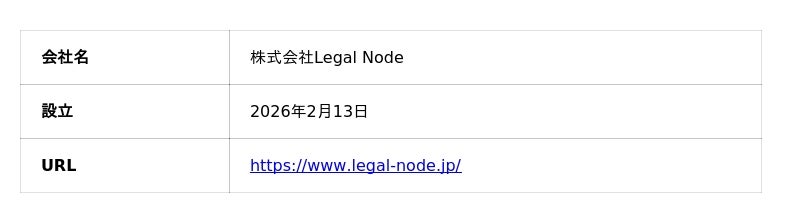 本件に関するお問合せ株式会社Legal Node 広報担当