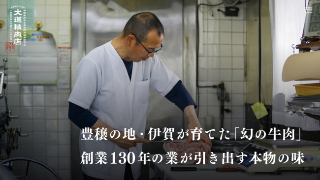 三重県伊賀市の特産品である伊賀牛は、ブランド牛のなかでも出荷頭数が少なく、そのほとんどが伊賀地域で地産地消されています。このたび弊社は、「伊賀牛の魅力を全国の食卓にお届けしたい」という大道精肉店の想いを形にすべく、手軽に利用できるECサイトの開設に臨みました。