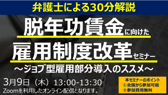 タイトル:「脱年功賃金に向けた雇用制度改革セミナー ~ジョブ型雇用部分導入のススメ~」
