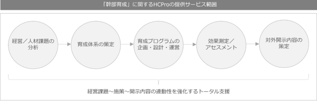 こうした外部環境の変化を受け、人的資本のプロフェショナルファームであるHCProでは、グローバル水準の「幹部育成」実現に向けた一気通貫サービスを開始しました。
