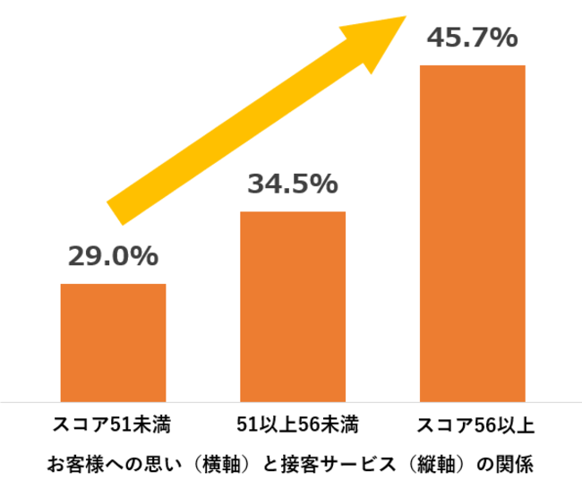 ■「仕事への誇り」が高い店舗は、「接客力」も高い。