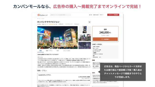 カンバンクラウド株式会社(本社:東京都豊島区、代表取締役:古田 拓也)は本日2022年12月13日に、広告枠専門のマーケットプレイス「カンバンモール」のベータ版をリリースしました。クレジットカード等の決済機能・ポイント還元機能・チャット管理機能・出品/売上管理機能を備えた統合型の広告マーケットプレイスとしては業界初(2022年12月13日現在、当社調べ)となります。