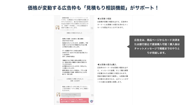 ■広告主の購入後はチャットでスムーズなやりとりが可能