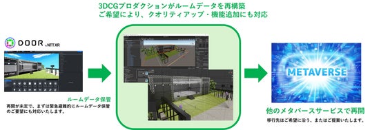 2025年3月31日(月)にサービス終了となるNTTコノキュー「DOOR」の他メタバースでの再開を3DCGプロダクションが低コスト・短期間で緊急支援。見た目のクオリティアップや機能追加も支援可能です。