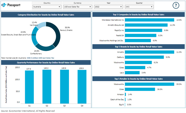 Euromonitor E-Commerceデータベースには以下が含まれます: