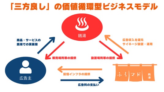 『ふろマド』は広告主さま、設置協力頂く銭湯さま、銭湯利用者さまの