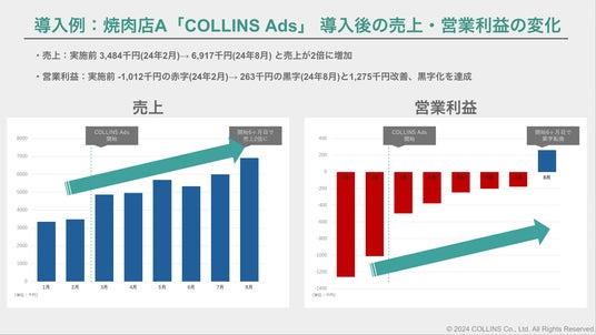 焼肉店A「COLLINS Ads」 導入後の売上・営業利益の変化
