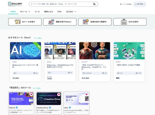 AIリスキル株式会社(本社:大阪府大阪市北区梅田1-2-2、代表取締役:山原 慎也、以下AIリスキル)は、500以上のAIツールを検索できる日本最大級の生成AIプラットフォーム「AIツールギャラリー」を2023年7月1日にプレリリースいたしました。同時に、誰でも簡単にAIに関する講座を作成・公開できる「コースビルダー」機能もリリース。これを記念し、期間限定で「生成AI入門講座」を無料公開いたします。
