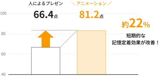 採用担当者による10分間のプレゼンテーションと、約3分のアニメーションの後にテストを実施した結果「短期的な記憶効果」や分かりやすさは、人よりもアニメーションの方が効果的であることが分かりました。