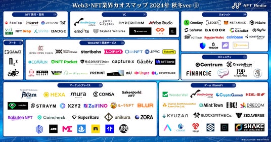 株式会社NFTMedia(本社:東京都文京区、代表取締役:小林 憲人)は、運営する国内最大級のNFT専門メディア「NFT Media」にて、Web3/NFTに関連する事業を展開する事業者やサービスをまとめた「Web3/NFT業界カオスマップ2024 秋冬ver」を公開いたしました。