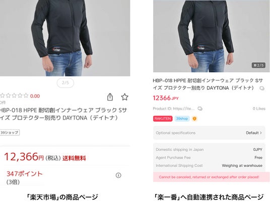 今回のAPI連携により、日本国内で「楽天市場」に出品された商品情報は、「楽一番」(