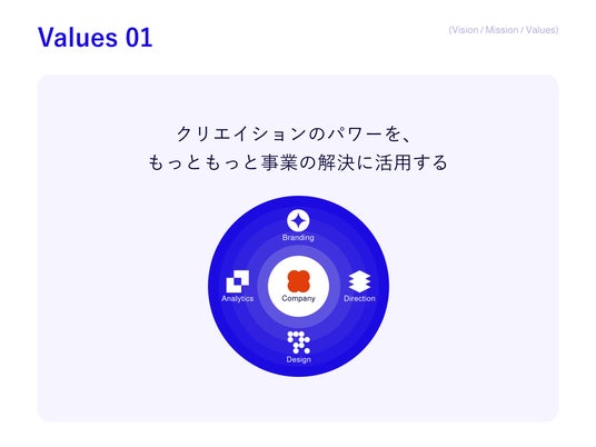 ブランディング、Webサイト、映像、SEO、LPO、オウンドメディア開発からグラフィックデザインまで、さまざまな領域のプロフェッショナルが企業課題に応じて最適なチームを編成。