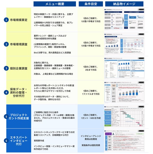 デスクトップリサーチに慣れた、ノウハウ豊富なコンサルティング会社出身のメンバーが調査を担当するためです。調査手法についてマニュアルやフローが定型化されており、高効率でリサーチを実施ができる体制を構築しております。また、Felo.AIなどの最先端AIツールを活用して効率化することで高速対応を実現しているためです。