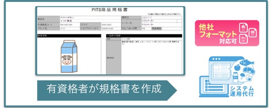 社内オリジナル、他社フォーマット等、あらゆる仕様に対応し、規格書データを保持管理運用、商品管理部のアウトソーシング化を実現します。
