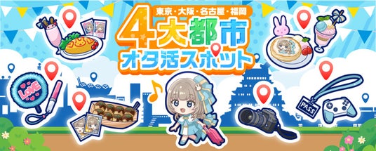 日本各地のオタ活スポット、東京、名古屋、大阪、福岡各都市の注目エリアをマップ上に表示します。