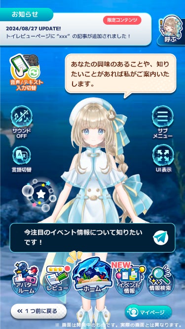 ● アバタールームアバタールームでは、「ウララ//プロトコル」の案内役(コンシェルジュ)である[ウララ・ルカ]と会話ができます。