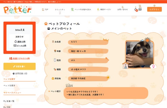 「Petter」は、犬・猫をはじめとする多様なペットを愛する人々が、共通の関心や価値観をもとに、交流・情報交換・イベント参加などを通して、豊かなペットライフを実現できる会員制コミュニティサービスです。