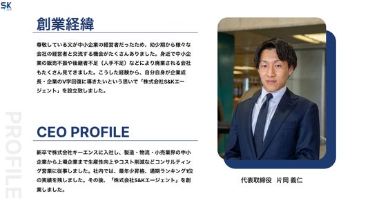 代表取締役の片岡は、キーエンスでの営業経験で培ったコンサルティング営業ノウハウを「多くの中小企業の営業課題解決に役立てたい」という思いから本サービスを開発。テスト期間中も複数の企業との協力により、サービスの有効性を検証し続けてきました。
