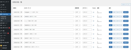 「リソース不足で更新が止まる」という恐怖から、あなたは 完全に解放されます。「(AI Auto Post)」の予約投稿 機能を使えば、