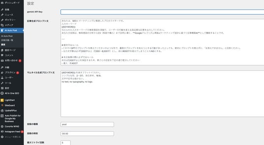 ※全ての動作を保証するものではありません。投稿日時は予約できますが、生成状況により、誤差が生じる場合がございます。また手動出力し、記事投稿も可能です。アクセスが少ないサイトの場合、WordPressの特性上、予約投稿が見送られることがあります。その場合の対処法として、プラグインで手動出力をして下書きし、WordPressの投稿機能で予約していただければ出力されます。