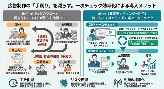 「薬事ディフェンダー」の活用により、広告制作現場では次のようなメリットが期待できます。