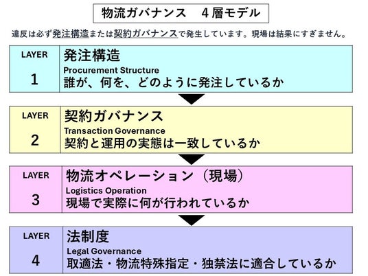 3.なぜ荷主企業にとって問題なのか物流ガバナンス4層モデル見ると、問題の本質は明確になる
