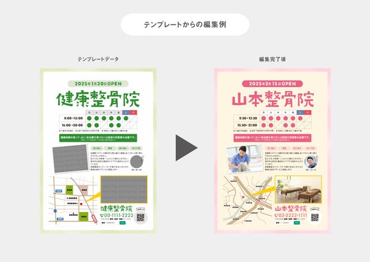テンプレートには広告効果を意識した構成やデザイン性が盛り込まれており、単なるデザイン作業の効率化にとどまらず、成果を生むプロモーションが実現できます。