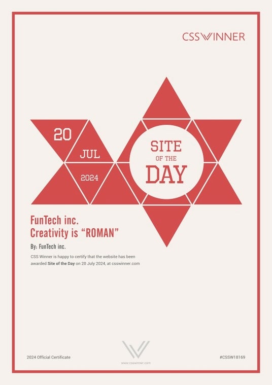 https://www.csswinner.com/details/funtech-inc-creativity-is-roman/18169<CSS Winnerについて>