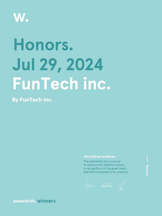 FunTech株式会社FunTech株式会社が自社コーポレートサイトにて、Webデザインの世界3大アワードといわれる「CSS Design Awards」「Awwwards」「FWA」を含む4つのアワードにて複数の賞を受賞