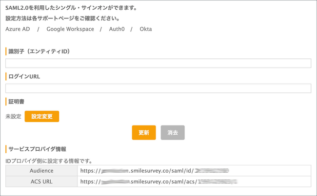 今回のアップデートで、より高いセキュリティレベルでスマイルサーベイを安全にご利用いただくためシングルサインオン機能をご提供いたします。