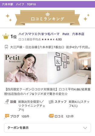 ■顧客には芸能人や人気YouTuberも多数、ホットペッパービューティーでは六本木エリアで第1位を獲得