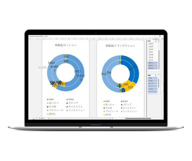 デフォルトでは弊社推奨のダッシュボードを用意していますが、ExcelやLooker Studioでの提供のため、ご自身で自由にピボットテーブルなどを用いて分析が可能です。
