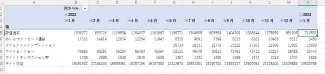 ピボットテーブルで使える様々な指標をご用意していますので、分析をお楽しみください。