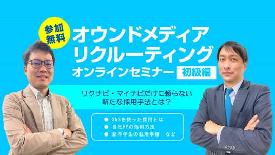 自社採用サイトや、SNSなど「オウンドメディア」を活用した新しい採用手法について、わかりやすく解説します。さらに、参加者特典として、オウンドリクルーティングの全体像を詳しく解説したセミナー資料をプレゼントいたします。新たな採用手法を検討中の貴社の採用成功に是非お役立てください。
