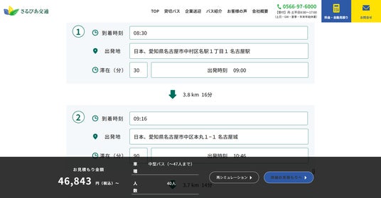 「料金自動見積システム」を新たに導入し、お客様は出発地や目的地、利用日時、バスの種類などを入力するだけで、瞬時に概算料金を確認できるようになりました。これにより、ご依頼が初めての方であっても、事前に予算感を把握した状態で、スムーズにお問い合わせいただけます。また、見積もり結果をもとに、より具体的なご相談も可能となり、お客様に最適なプランのご提案がしやすくなりました。