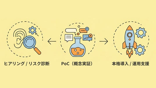 具体的には、AIモデル調整から、運用マニュアルの作成、社員研修など。